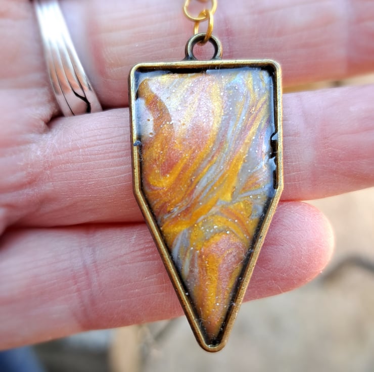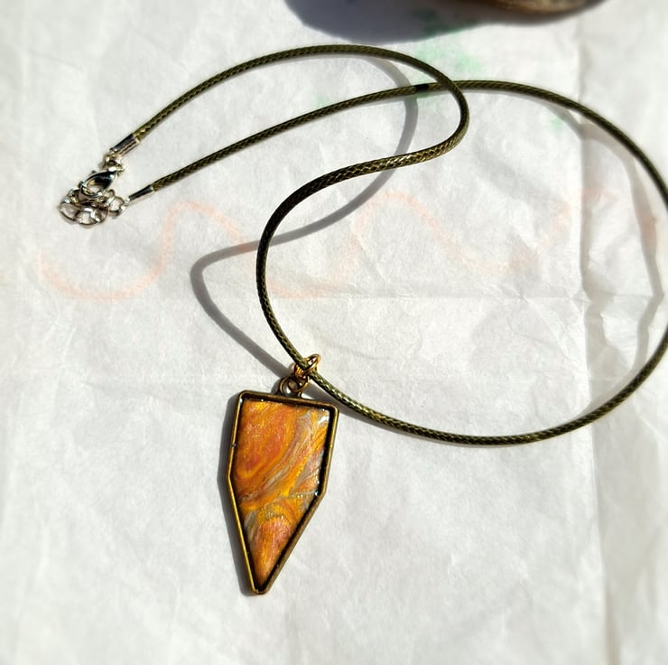 Rope necklace with a polymer clay filled bezel. Gold, rose gold, silver