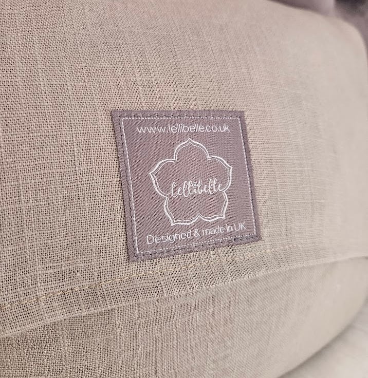 Envelope opening on back with 'Lellibelle' woven label.