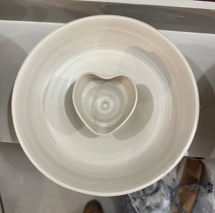 I originally made one of these as a wedding gift. I really enjoyed the challenge of throwing two forms out of the same ball of clay. I had a few disasters but am happy with the results.