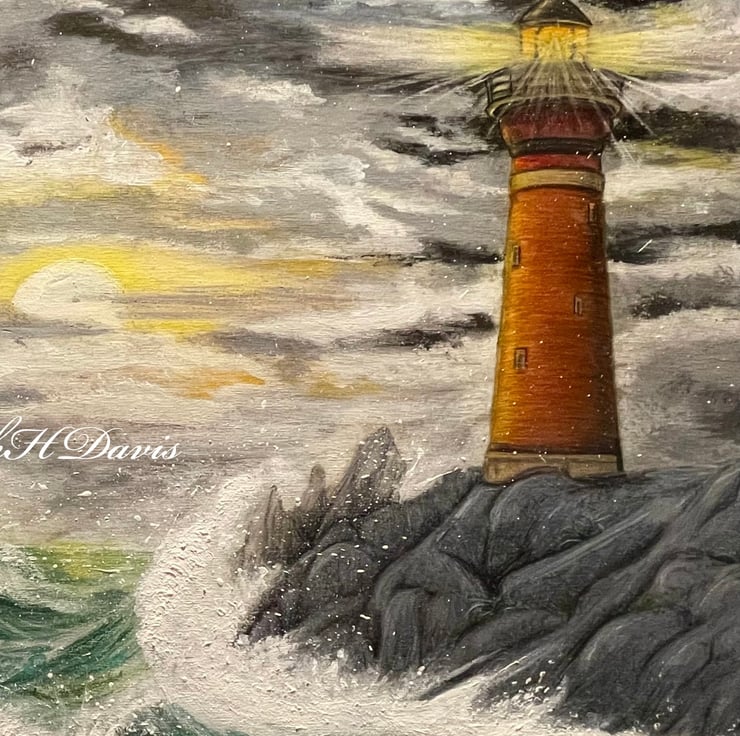 As dusk settles over the landscape, a sturdy, weather-worn lighthouse glows, as a steadfast guardian amidst the wild elements. Evoking the spirit of Ireland itself – both wild and serene, ancient and enduring – guiding the soul through the twilight of an eternal, windswept horizon.