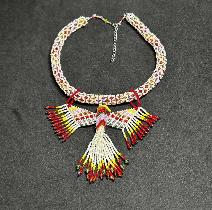 The Phoenix itself is three-dimensional and spreads its wings to display a glorious explosion of colours. The tail and the wings are further embellished with a stunning splash of dazzling crystals. Furthermore, if you want to wear just the crystal neckline, you may easily slide off the Phoenix element and just wear the necklace.