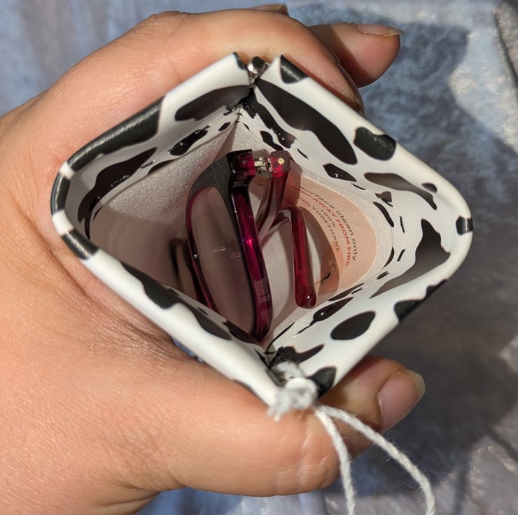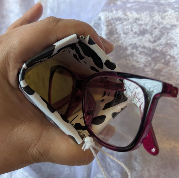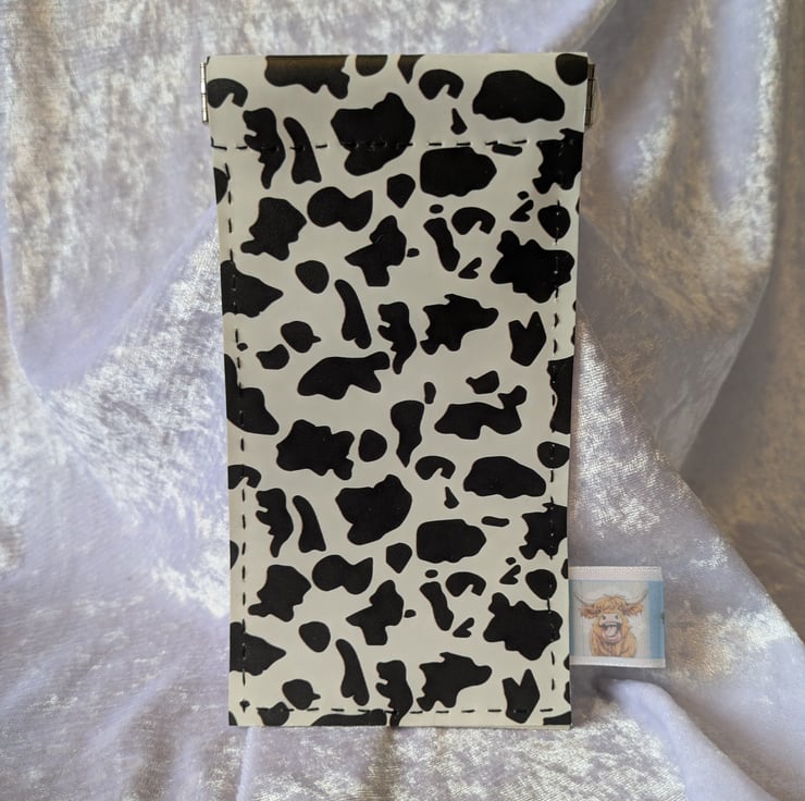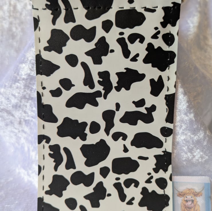A fabulous black and white, faux leather, cow print glasses case. Great for the cow lovers out there!!!