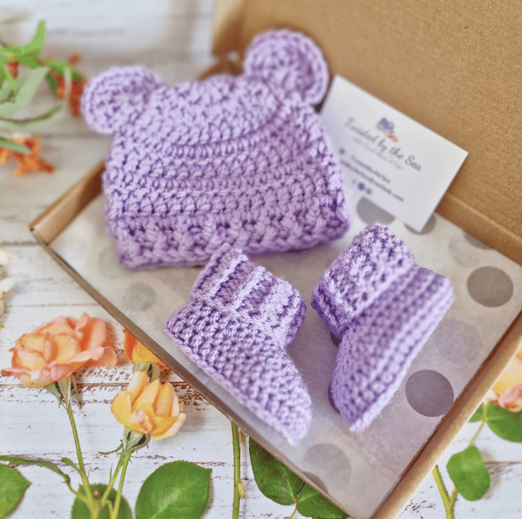 Welcome to Twisted by the Sea – home of beautifully handmade crochet baby gifts including baby booties, hats and cardigans. Each item is thoughtfully crafted using soft Stylecraft Special DK yarn, perfect for new arrivals, baby showers, and keepsake gifts. All made from my coastal home in Lincolnshire.