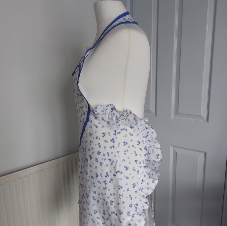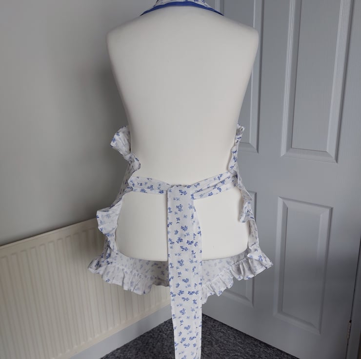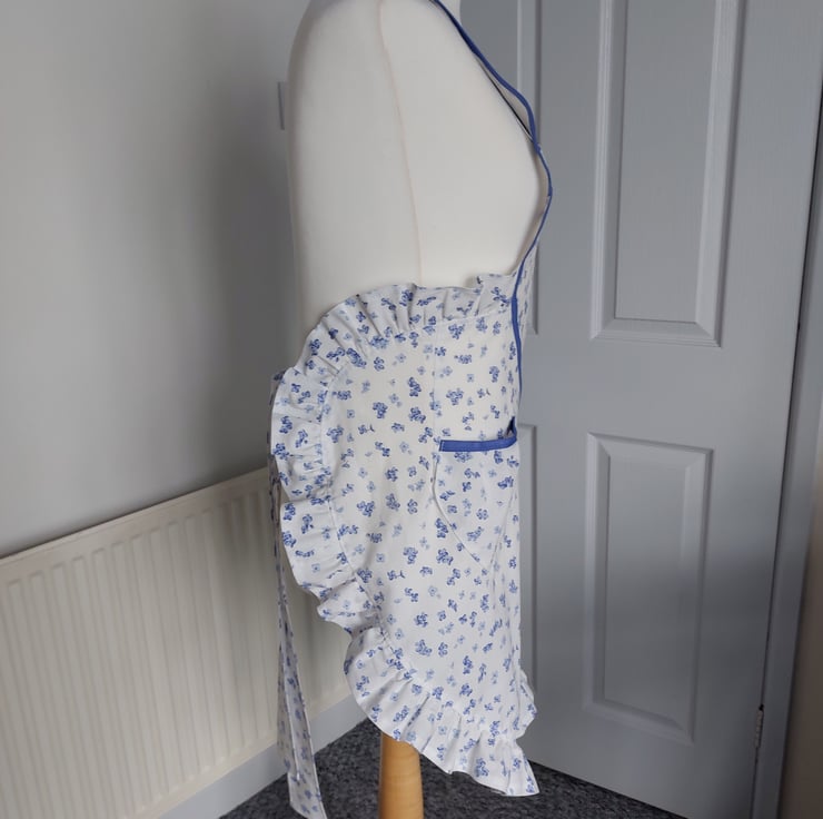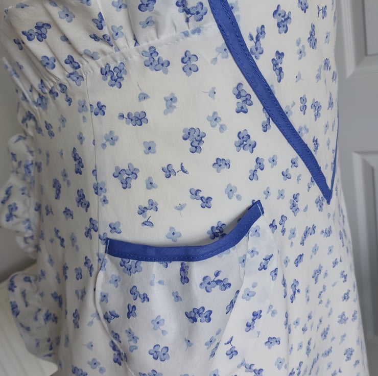 Handmade using a vintage floral fabric and a blue cotton bias tape