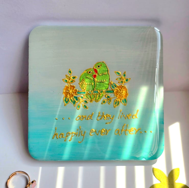 Add a touch of artisan charm to your home with this unique, hand-painted coaster. painted in vibrant colours, then sealed under a glossy, durable epoxy resin finish. The smooth resin top not only makes the design pop but also protects against spills, heat and scratches.