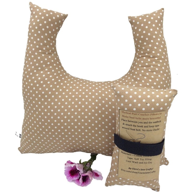 These beautifully handmade to order, bespoke post-surgery comfort pillows slot underneath your armpit and rest by your side so that you do not knock yourself with your arm. Great for that extra comfort sitting, in the car or in bed. Easily carried around with you and great for those car journeys as well as at home. The Underarm cushion gift set measuring approximately 10 x9 soft but firm enough to keep your arm away from your body plus smaller seatbelt pad measures approx 6"x3" and attaches with velcro to your seatbelt. These are more suited to Chemo Ports or other medical portspacemakers rather than for larger surgeries such as mastectomies. Other size seatbelt pads are available in my shop. Made with cotton fabric. and filled with poly fibre- I have lots of patterns available in my Handmade store. If you are buying for a double mastectomy you will require 2x underarm cushions. You can choose if you want Ribbon Shoulder Ties or not at check out. The Ribbon option allows you to hang the cushion from your shoulder (like a small shoulder bag) enabling it to go wherever you go keeping you protected from knocks.