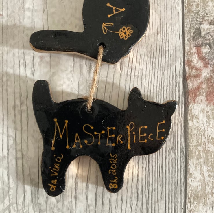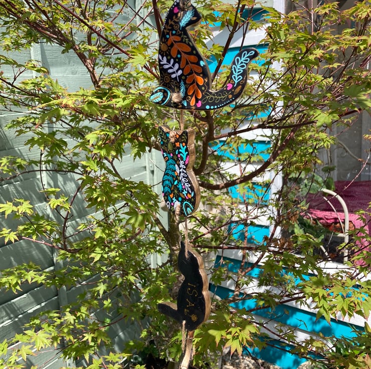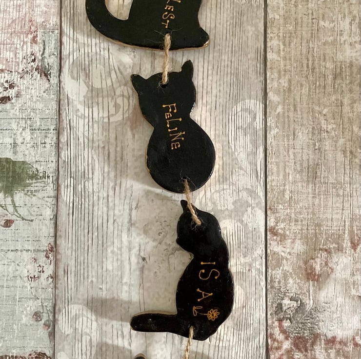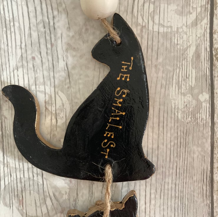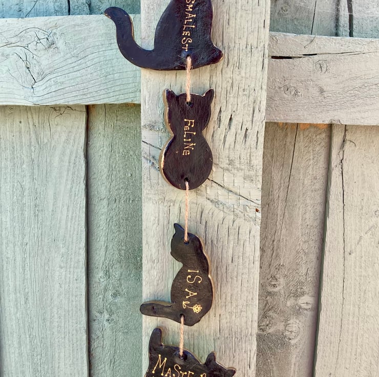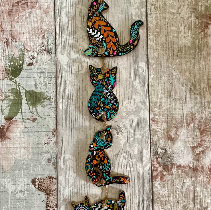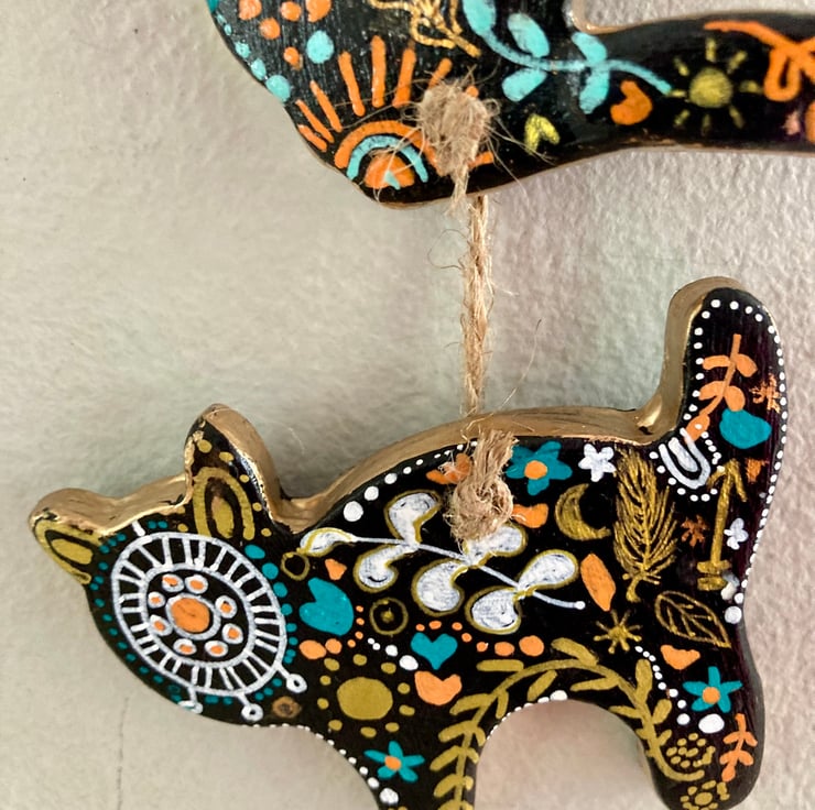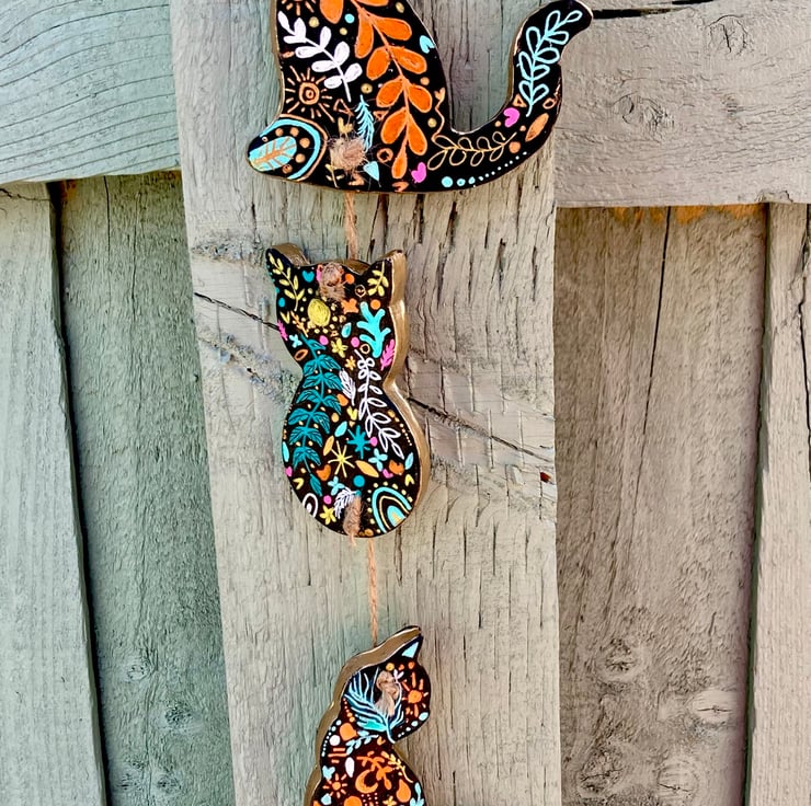 Boho Cats Wall Hanging Decoration Hand Painted Handmade Clay Cats