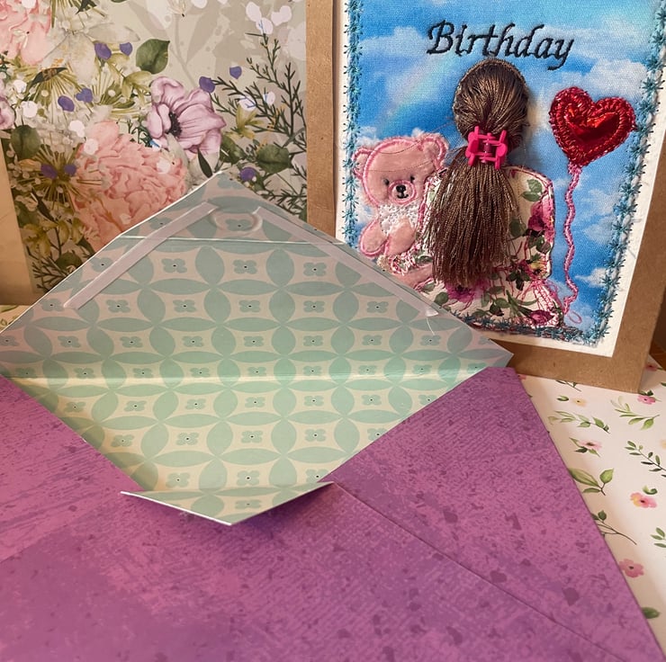 This beautifully handcrafted greeting card is a true labour of love, featuring 3D effects, machine embroidery with appliqué.