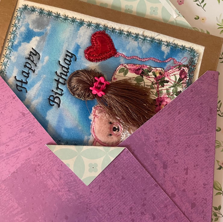 Crafted using a mix of fabric, cotton, card, and paper, each card is a unique piece of art. The cotton hair and layered textures add charm and depth, making this card a special keepsake as well as a heartfelt message.