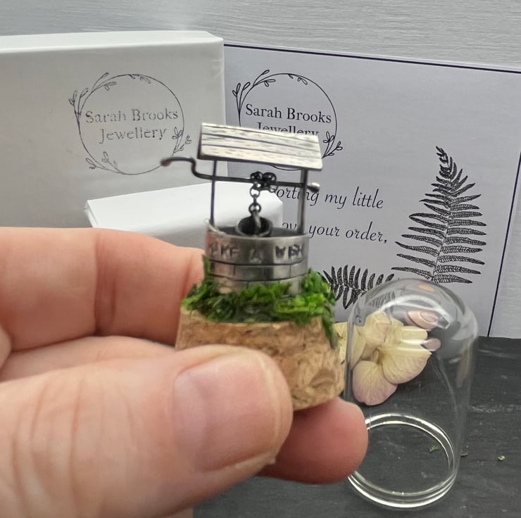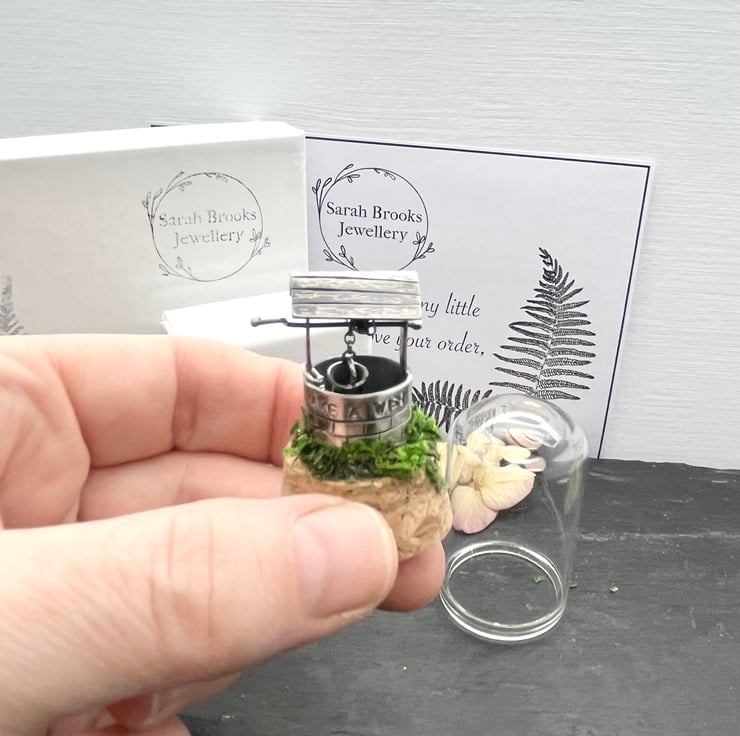 Little wishing well, handmade in sterling silver , with a handle that turns lifting the tiny bucket.