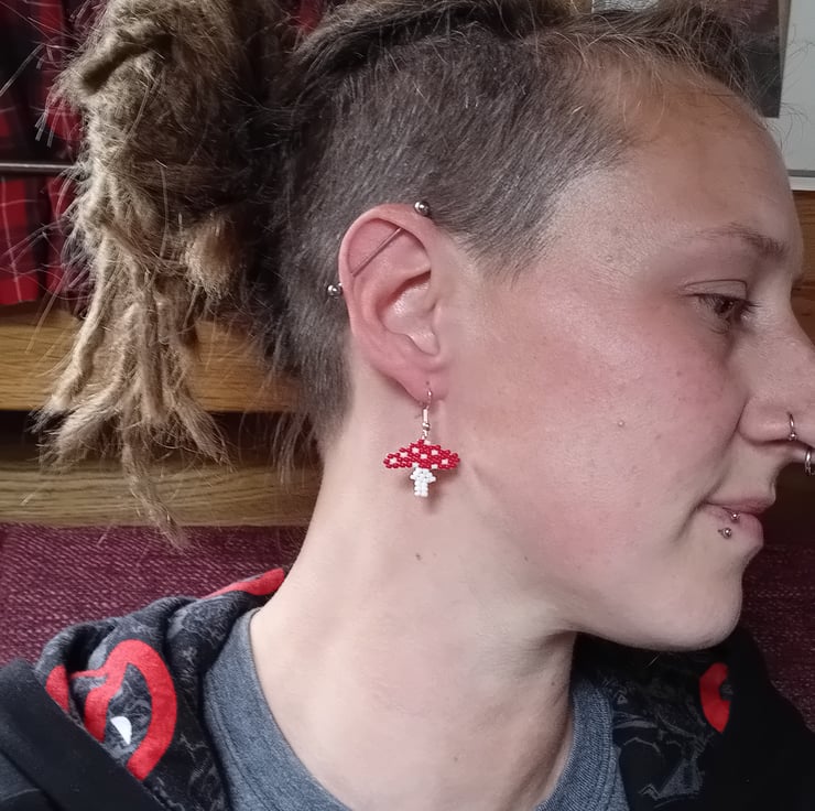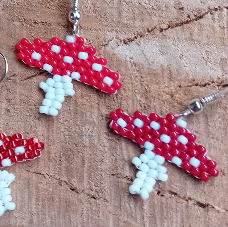 Size: approx. 3.5cm from top of ear wire. Mushrooms measure 2.5cm wide x 2cm tall.