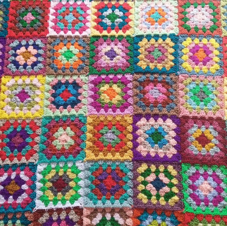My ‘Happy Scrappy’ blankets are the ultimate in rainbow squishiness! Made with all my left over half balls and ‘ends’ of yarn from other projects, they can contain over 100 different colours. Each and every square is different which means each and every blanket is different too. You’ll never get a blanket the same as anyone else so they truly are unique!