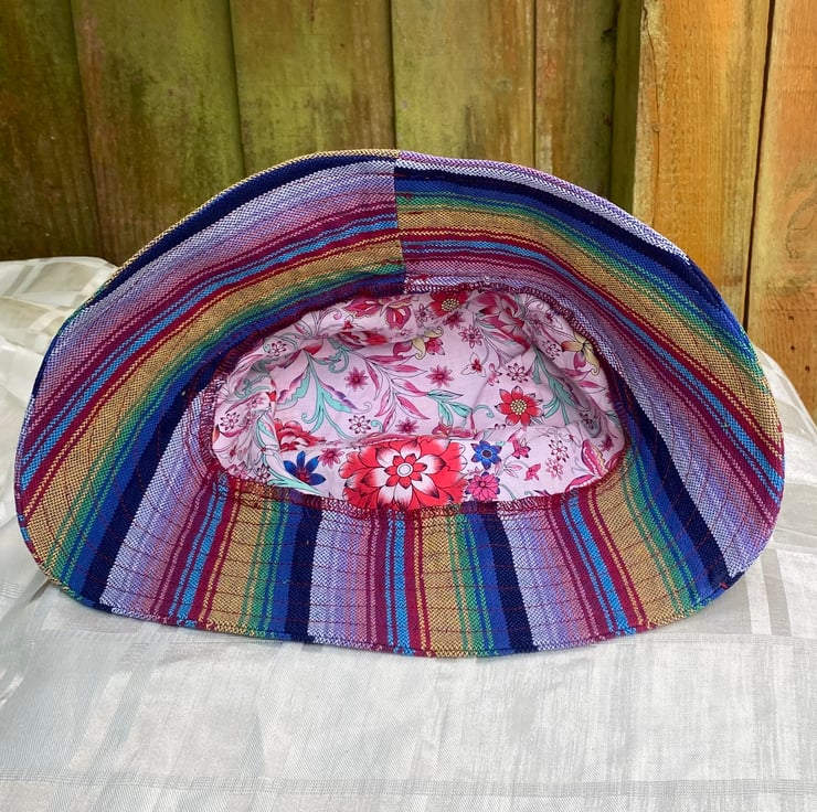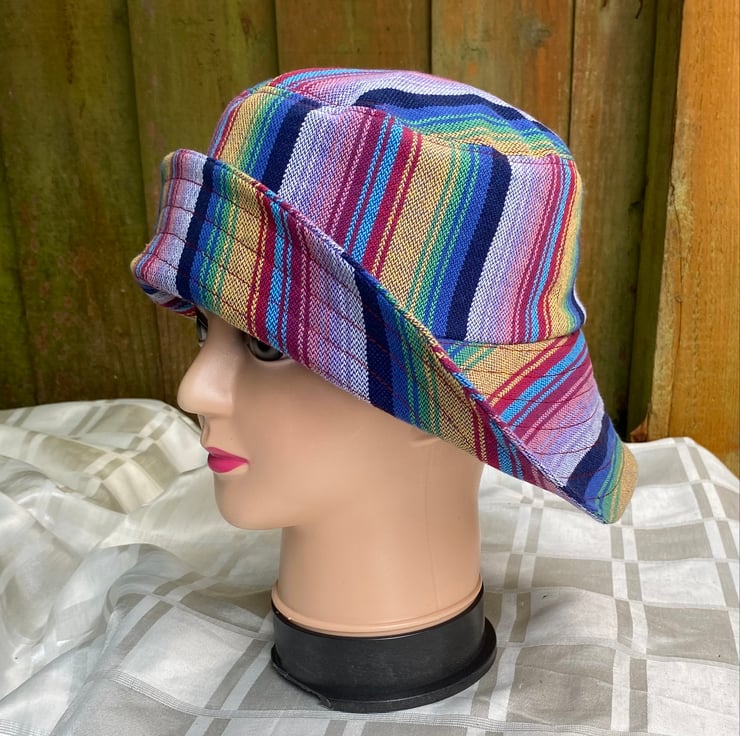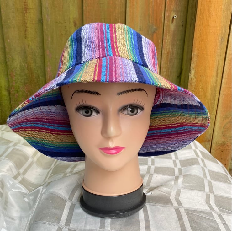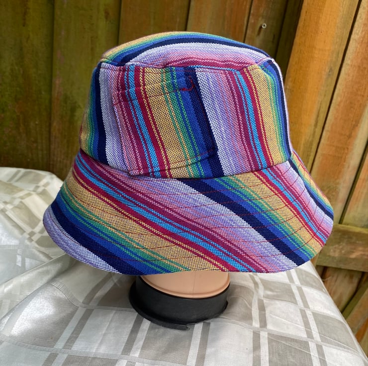 Handmade bucket hat in 100% striped woven Indian cotton fabric.