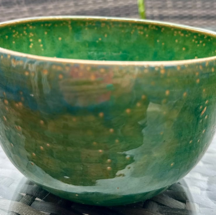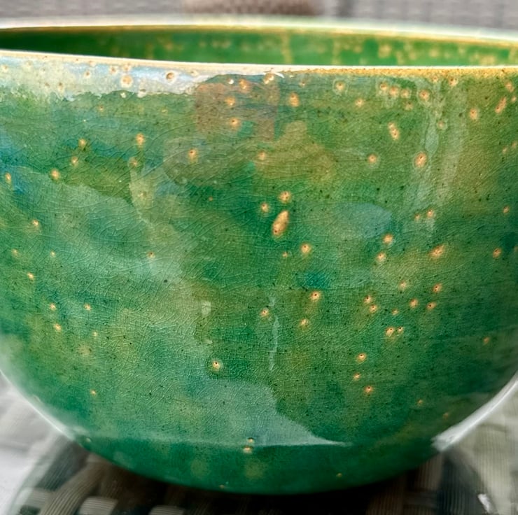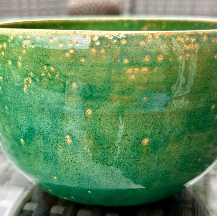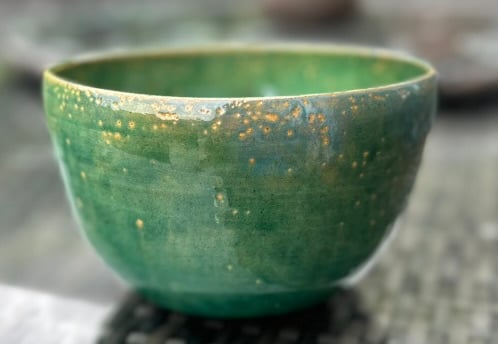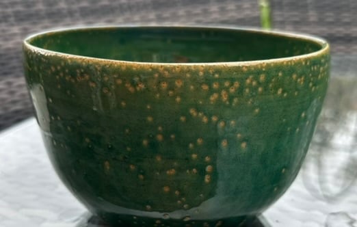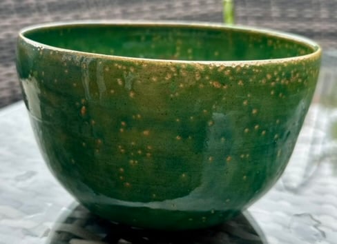 This hand-thrown ceramic bowl brings natural texture and subtle colour to your home. Finished with a rich green mottled glaze, this piece features organic variations that highlight its handmade origin. Ideal for everyday use—whether serving snacks, holding fruit, or simply displayed on open shelving—it adds a touch of artisanal warmth to any space. Durable, one-of-a-kind, and made to be enjoyed.
