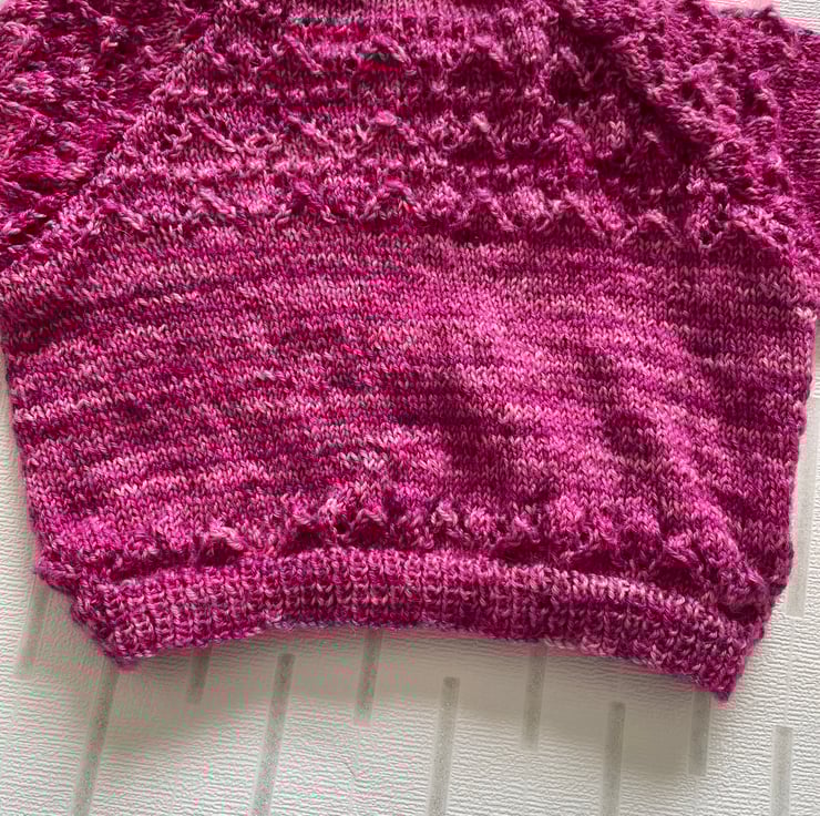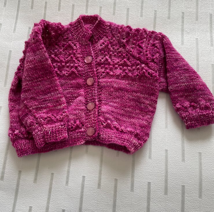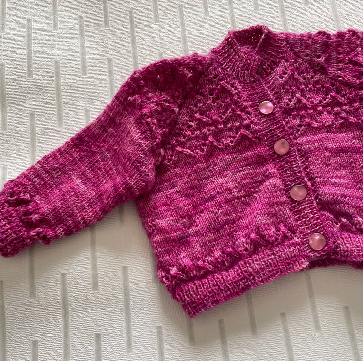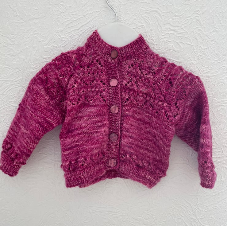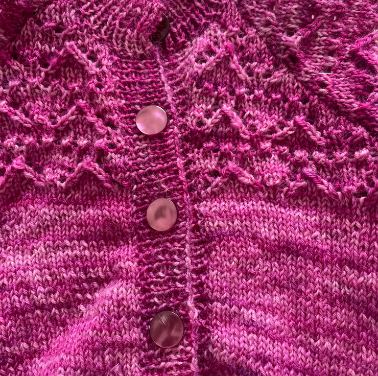 This pretty cardigan is hand knitted in a beautiful hand dyed wool.