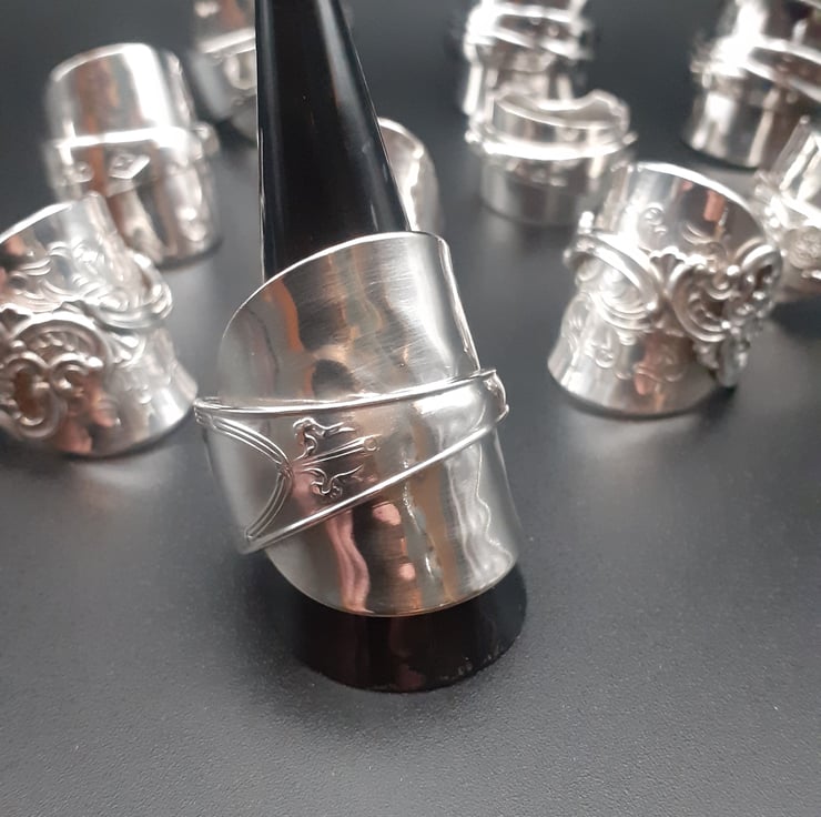 The whole spoon is used in the making of the ring, no welds or soldering used in keeping with how they were traditionally made and allows for adjustment.
