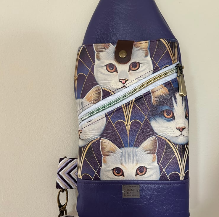 The bag is made from vinyl in a cute cat pattern with a cotton lining.