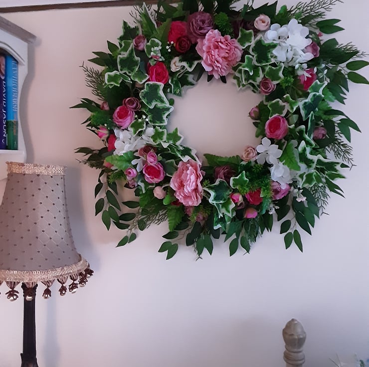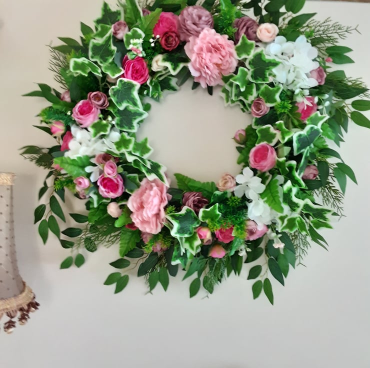 65cm, wreath, pink peonies, pink rose buds,different shades of pink