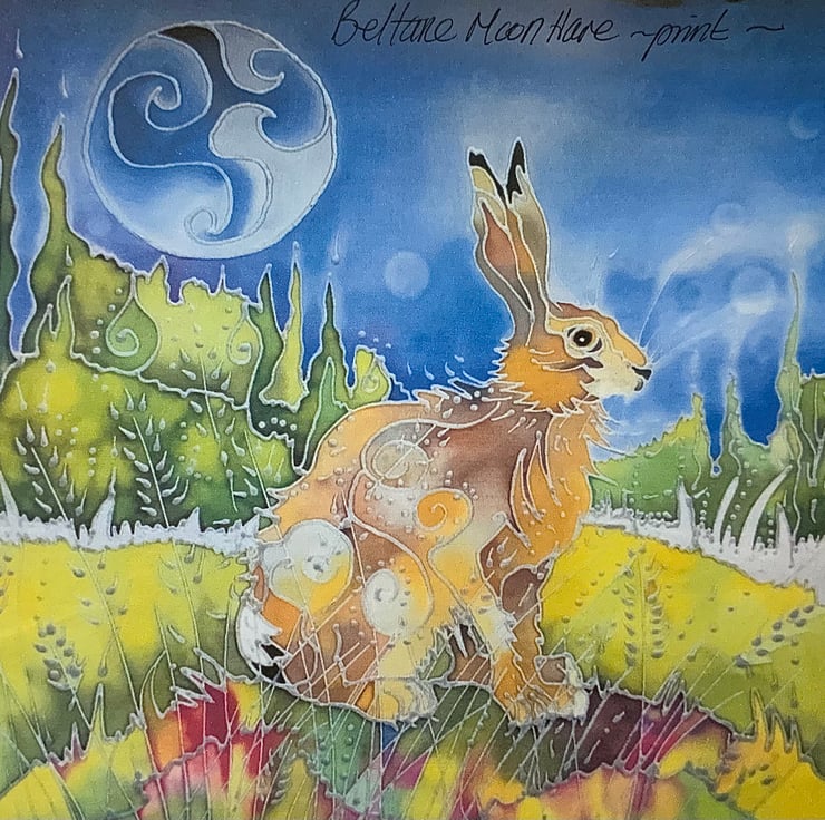 Mounted prints and printed cards of ‘Beltane Moon Hare’ are also available.