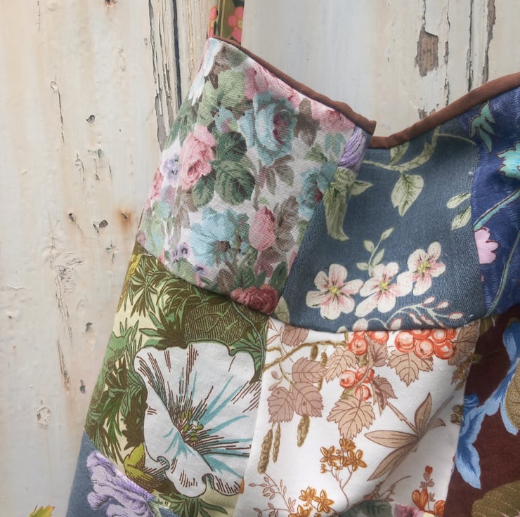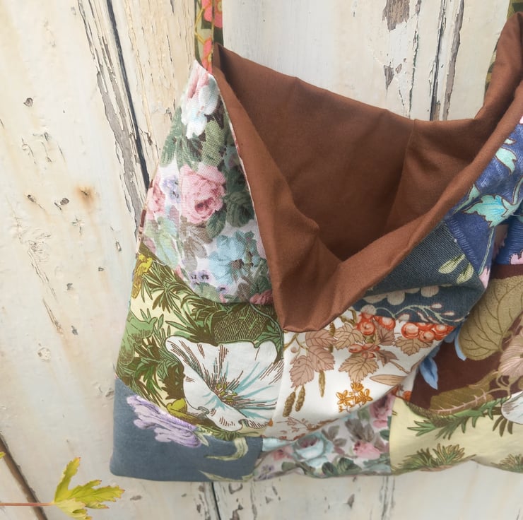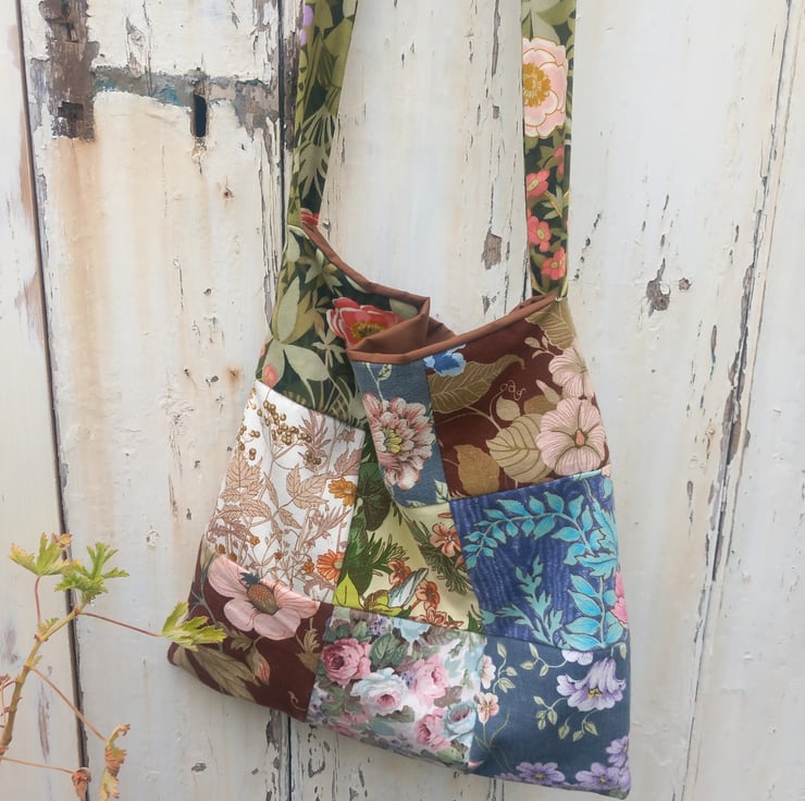 This beautifuly made bag is in soft rose fabric, fully lined and all seams are over and on the inside. 34cm.square .long strap so.could wear across the body. Free UK.postage