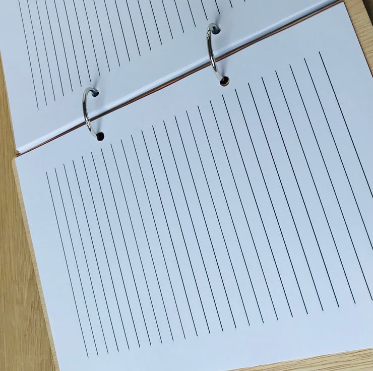 Available with 50 lined or 80 plain sheets of paper which can also be replaced due to the metal binder rings.