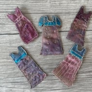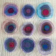 This heart shaped brooch has been made by needle felting wool before hand embroidering a design into the wool using embroidery threads. The embroidery stitches add splashes of colour to the felted background and radiate out from the centre of the brooch