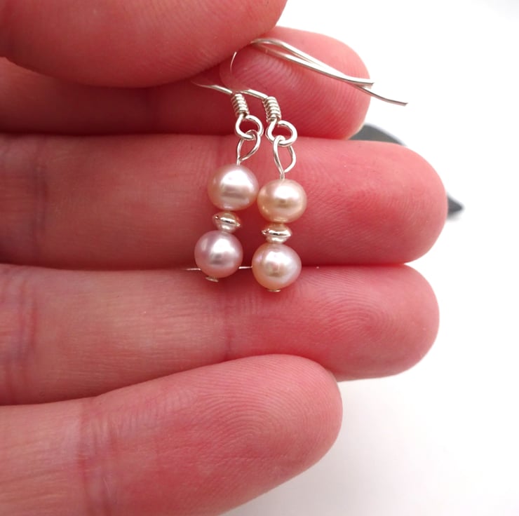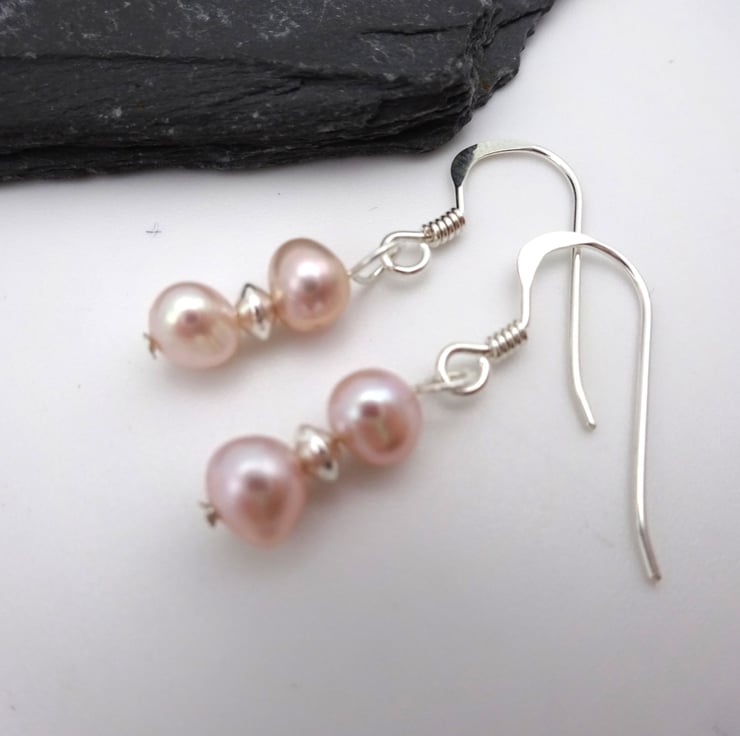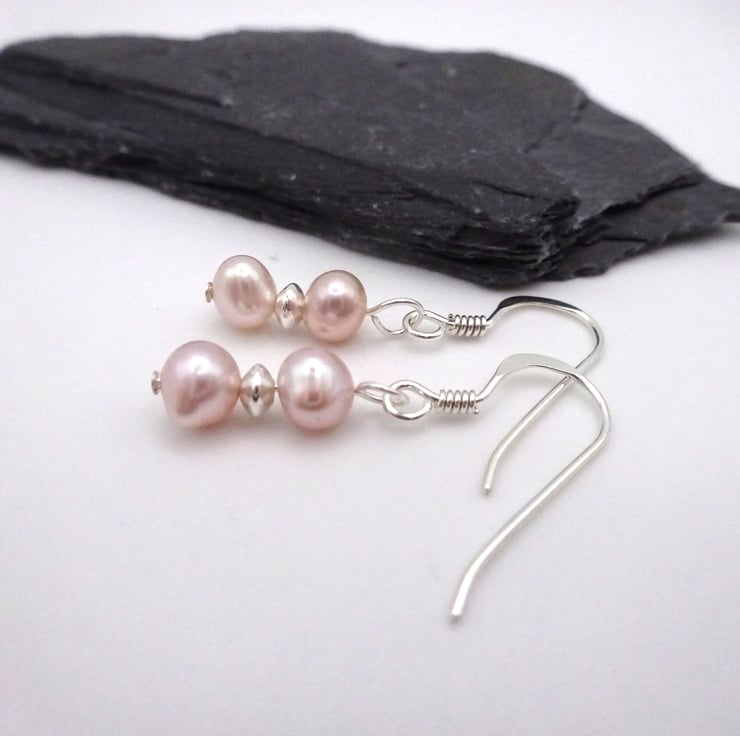 A pair of sterling silver earrings which feature pale pink coloured freshwater pearl beads.