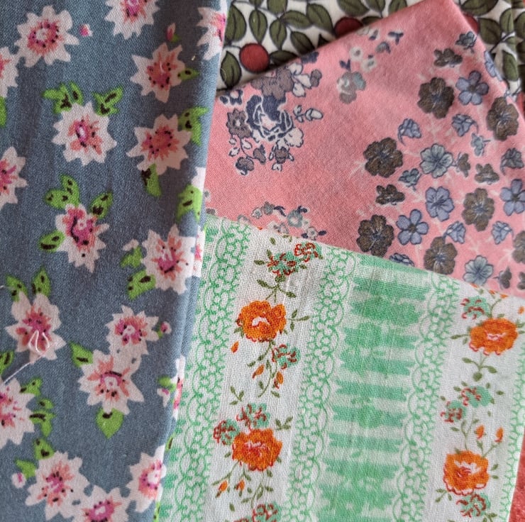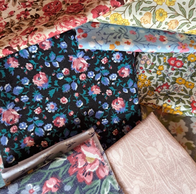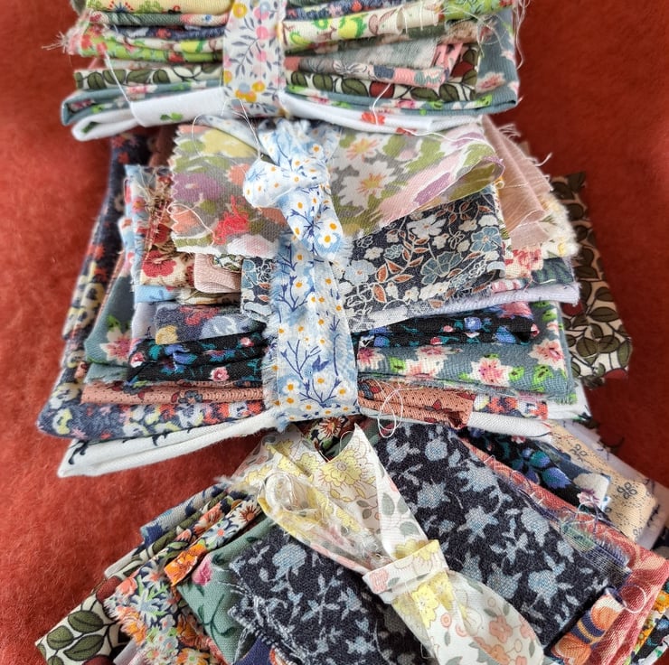 Tiny flowers, beautiful buds, special little sprigs... these adorable bundles contain roughly 12 pieces each, made up of new, vintage, Liberty, rescued and repurposed cotton and linen fabrics - all tied up with Liberty selvedge strips. Perfect for making purses, pin cushions, dolls clothes, textile art or adding to scrap quilts.