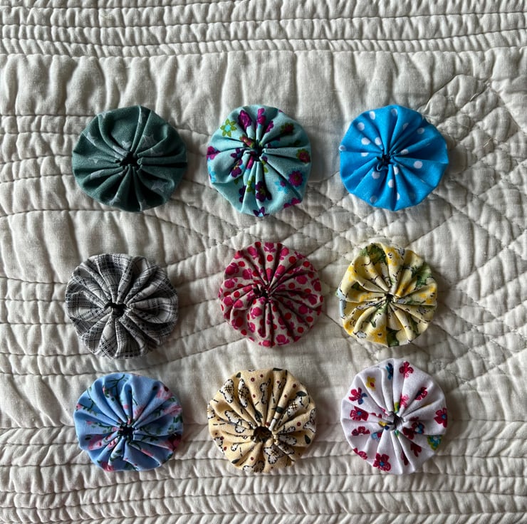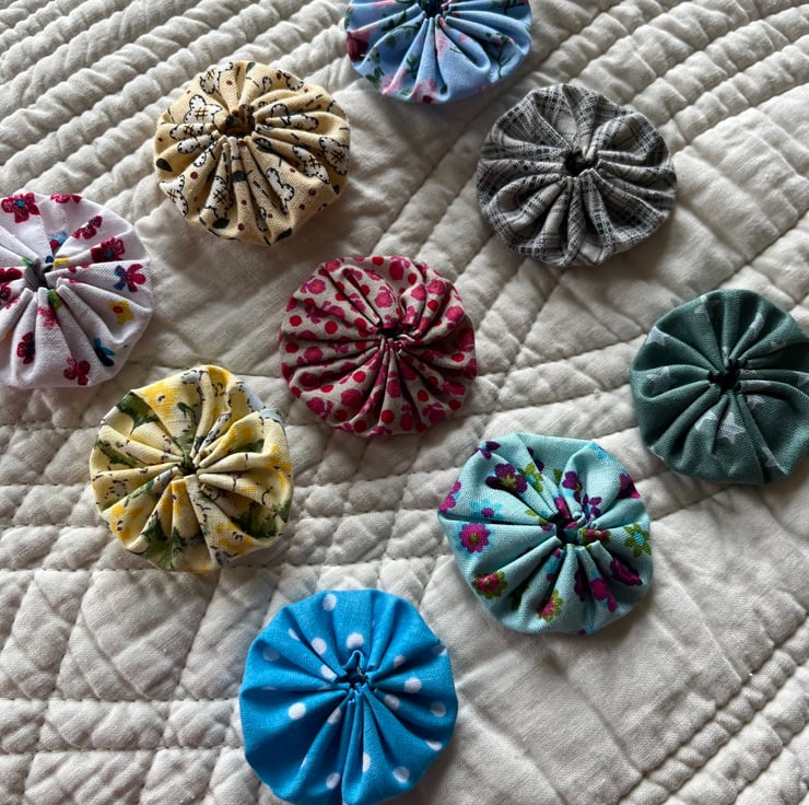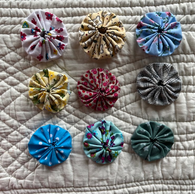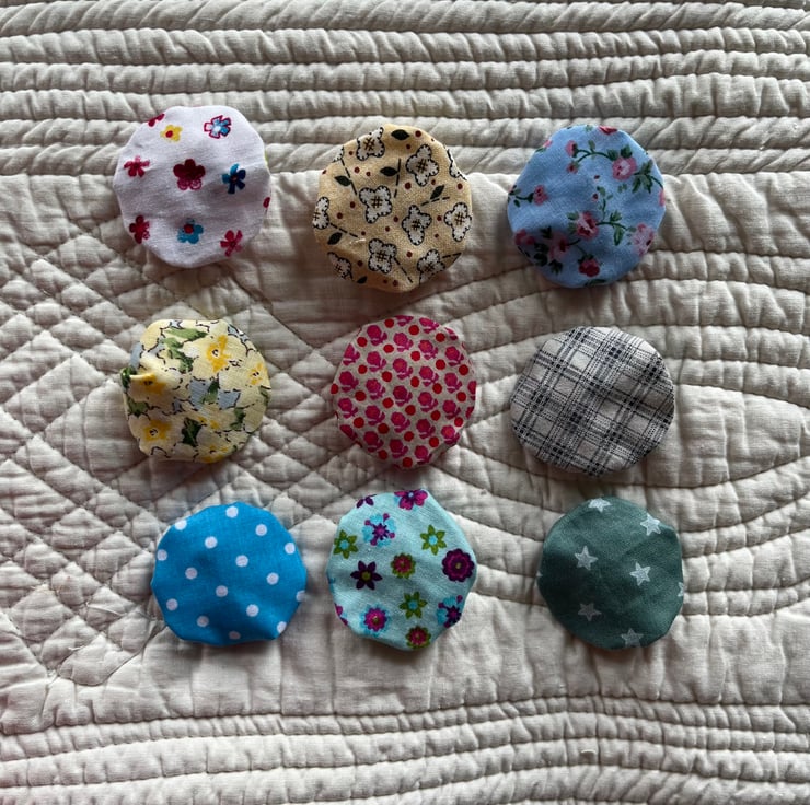 Useful for adding a bit of colour, texture or embellishment to a crafty make, this set of 9 Suffolk Puffs come ready to be attached by stitching or even glueing. They can be used in a variety of crafts including card making and bag making. Traditionally, they are used as a flower embellishment.