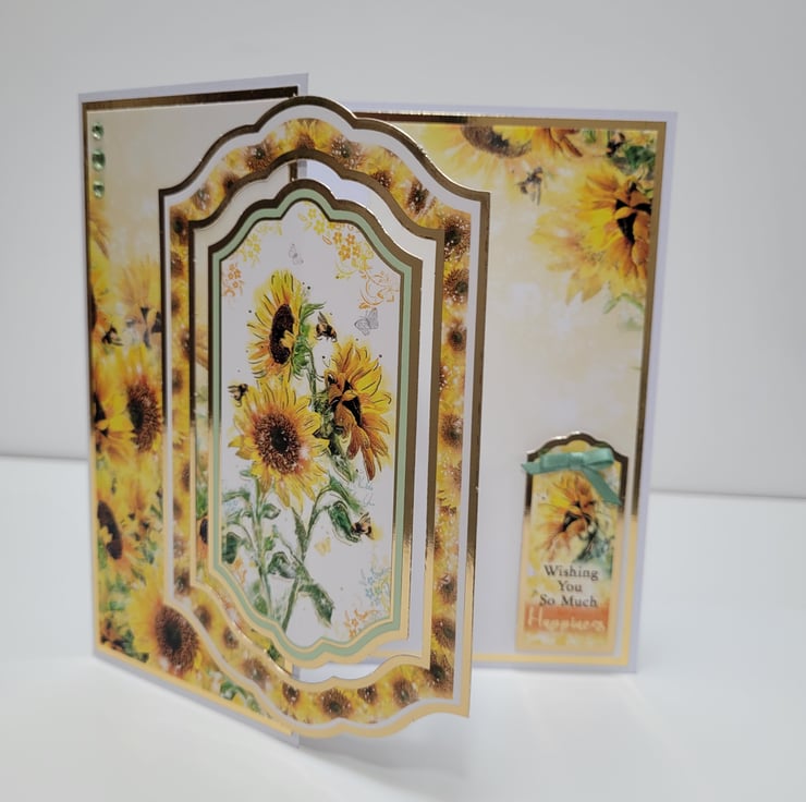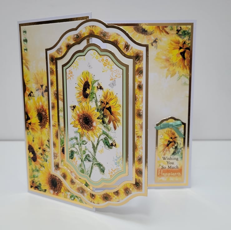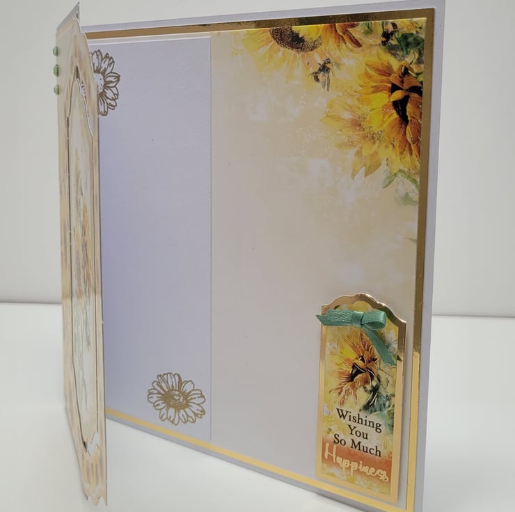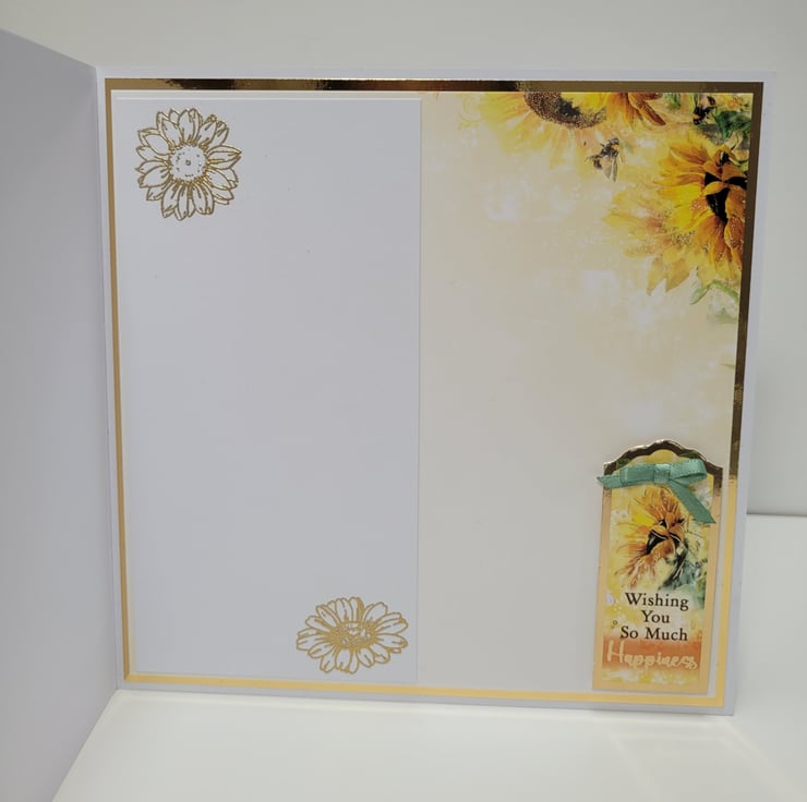 A beautiful and bright any occasion card featuring a gold foiled sentiment on the front which reads "Wishing you so much happiness".
