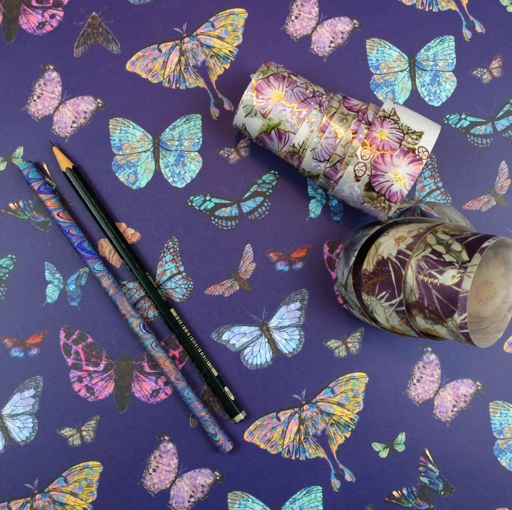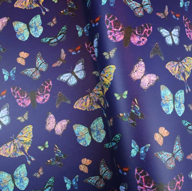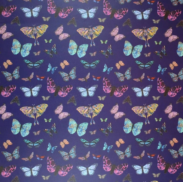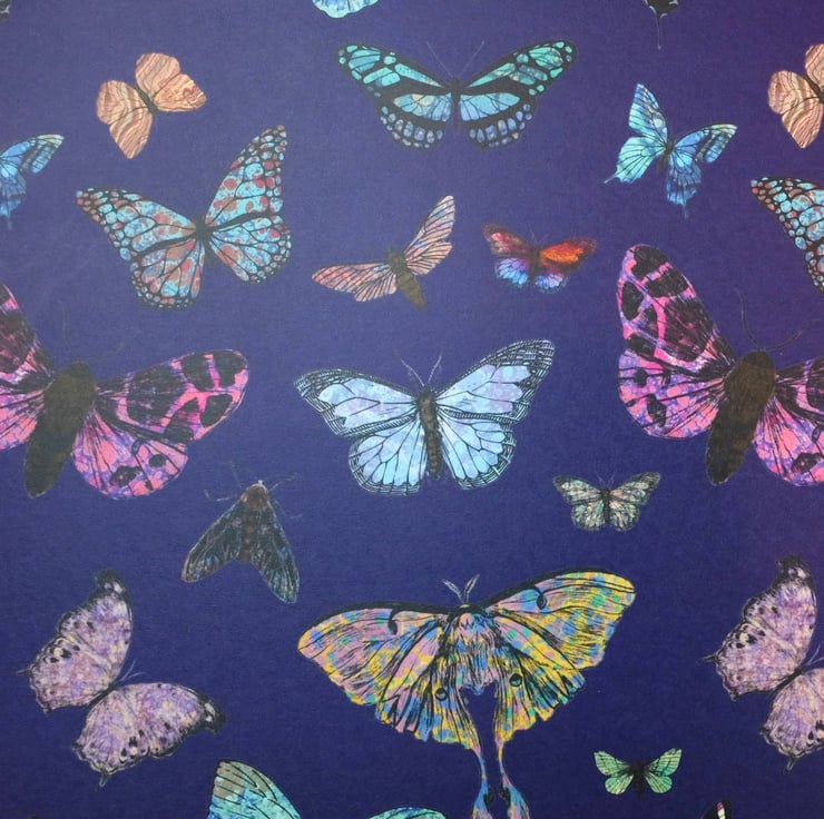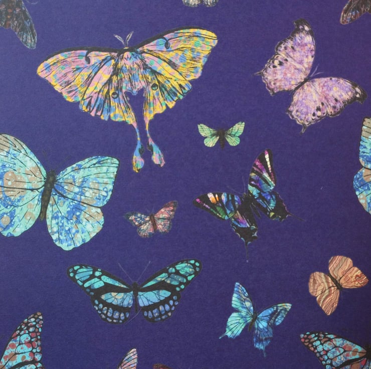 Marbled butterflies and moths wrapping paper on blueberry 70x50cm