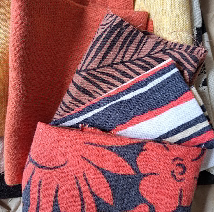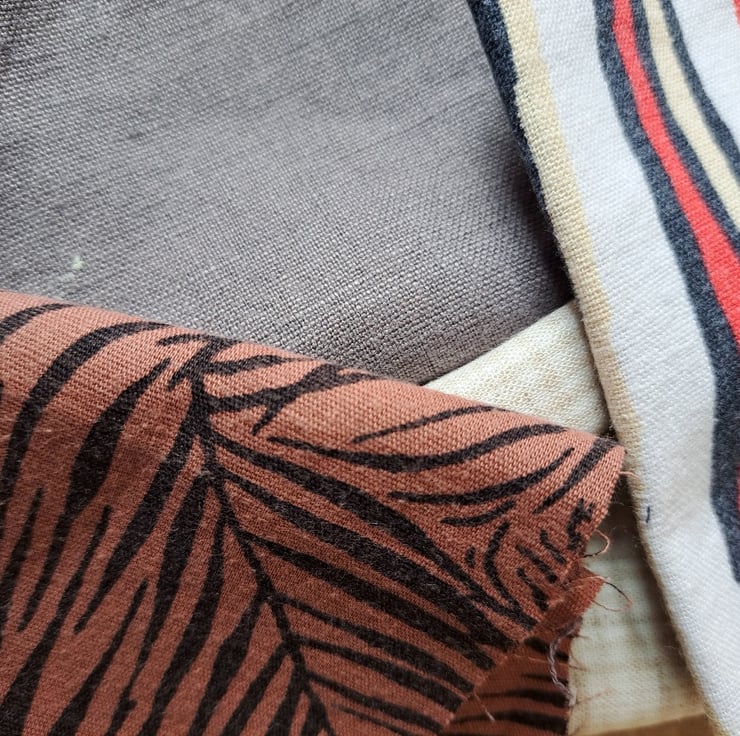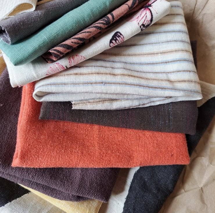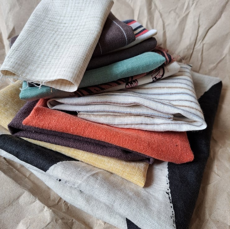 This nice big wodge of linen is made up of 14 assorted pieces, large and small. There's fine Irish linen, midweight linen, linen-cotton mix - plain, pinstriped, abstract, floral - remnants, off-cuts and pieces that were once dresses or trousers. If you love linen (that's everyone, isn't it?), then this will be right up your textile street.