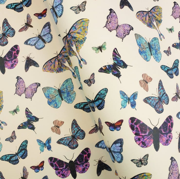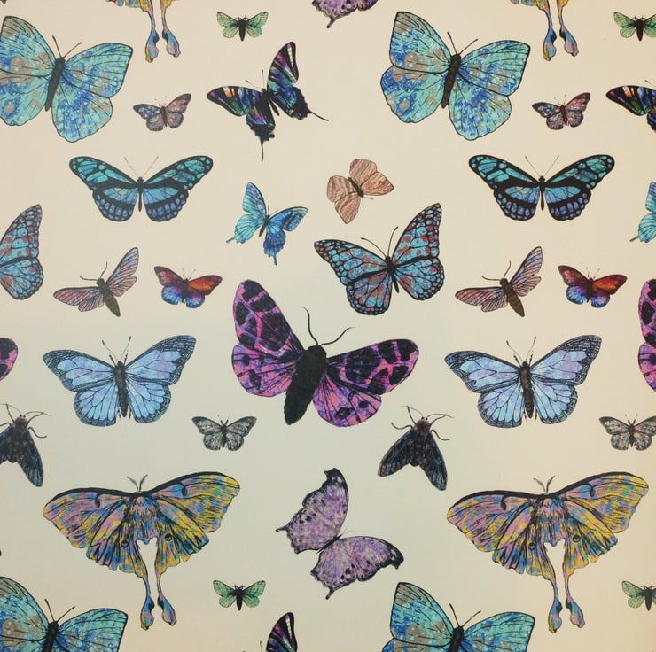 Marbled butterflies and moths wrapping paper on cream 70x50cm