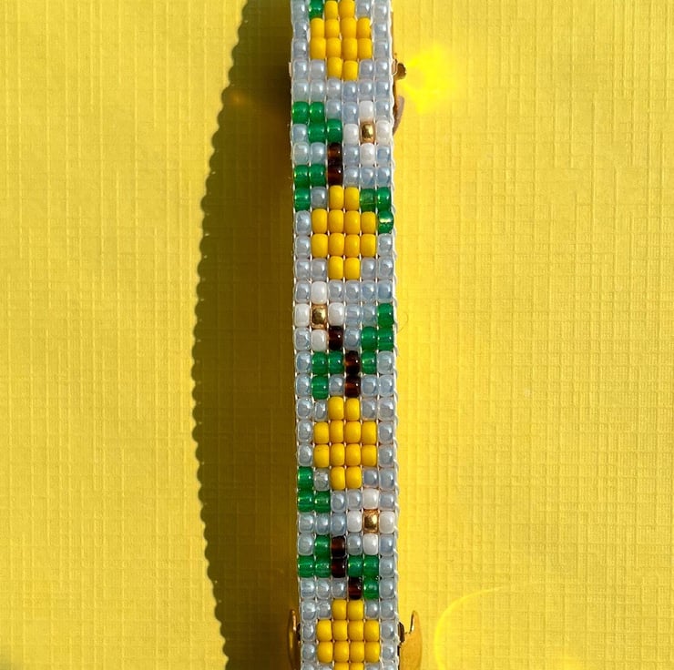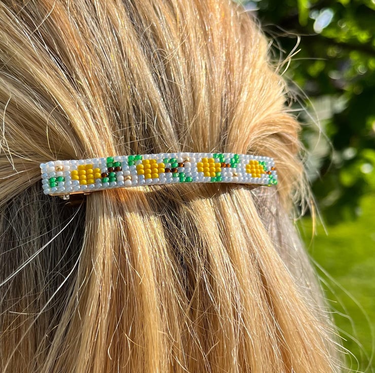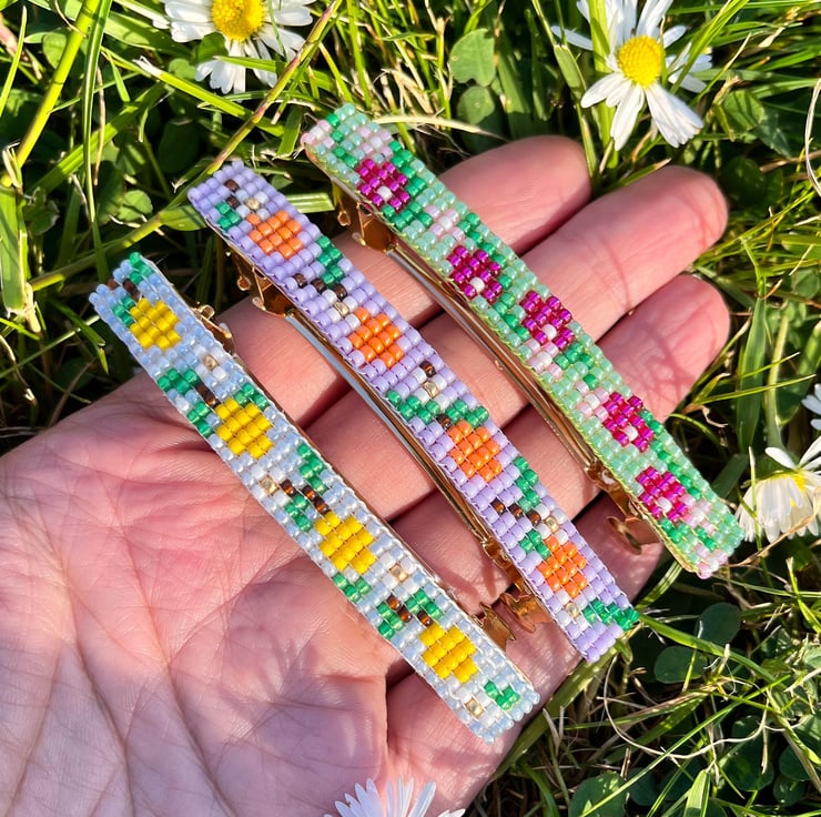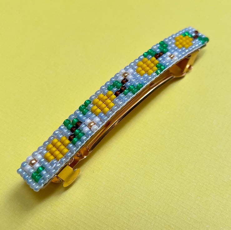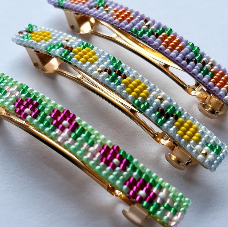 Each design is carefully woven on a loom and securely attached to a strong gold barrette clip. It holds thick or fine sections of hair with ease, making it perfect for styling everything from loose waves to elegant updos.