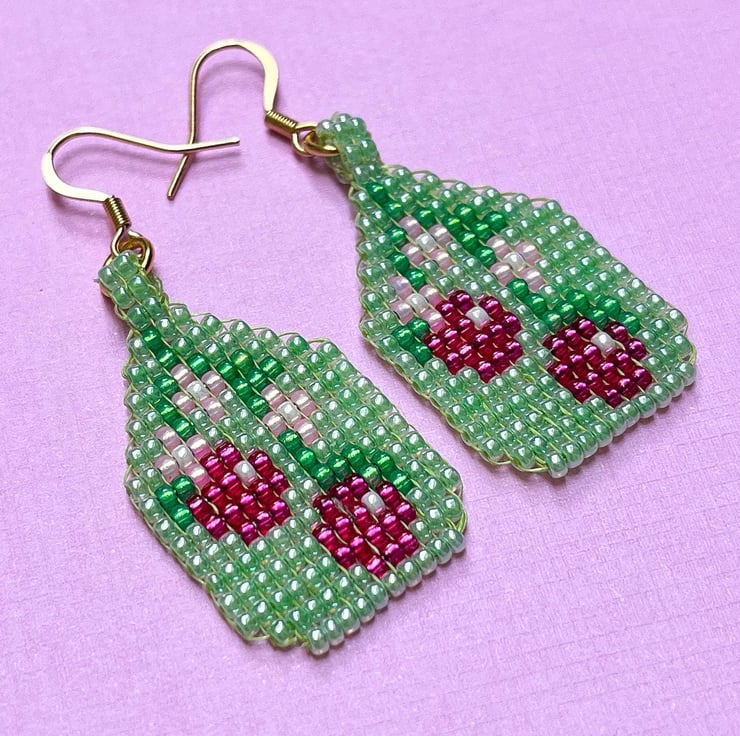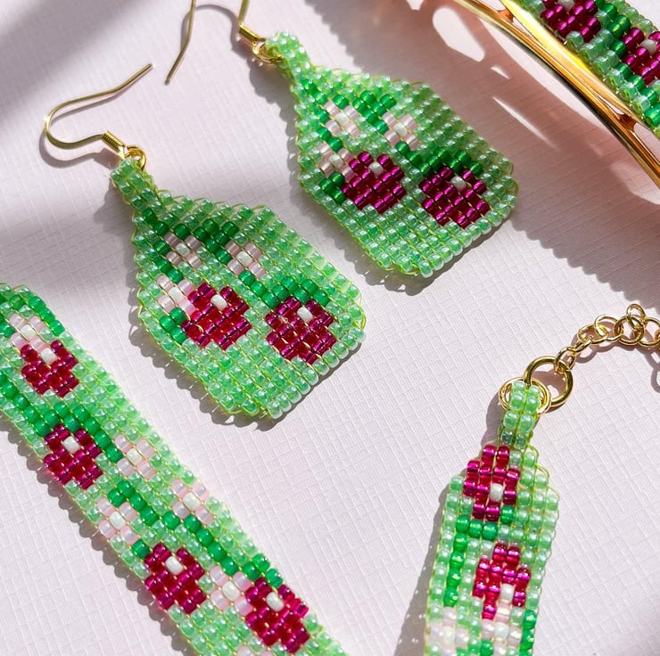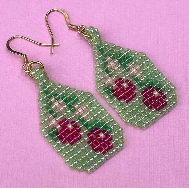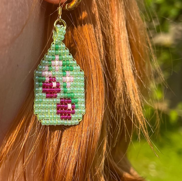 Each earring is handwoven on a bead loom using high-quality Miyuki glass seed beads for a detailed, lightweight finish that’s comfortable to wear all day. Finished with 18k gold-plated hooks, they’re perfect for garden parties, summer strolls, or gifting to someone who loves vintage florals with a fruity twist.