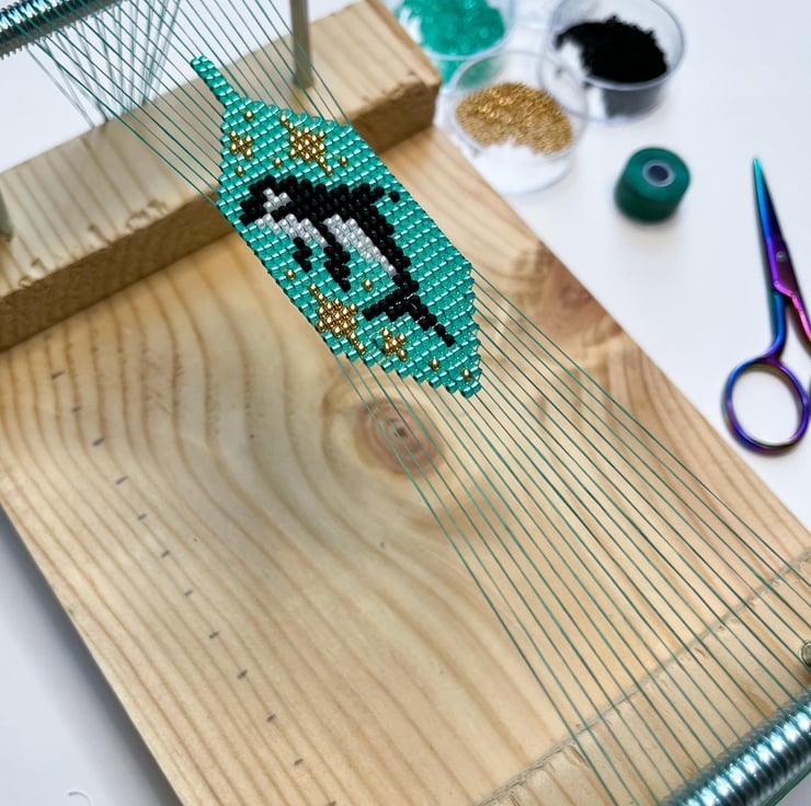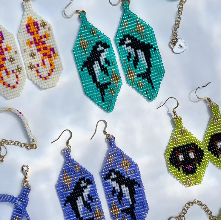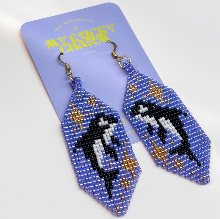 At My Lucky Charm, we’re inspired by nature, animals, and the kind of jewellery that sparks joy and nostalgia. These earrings were created with that in mind—a colourful, intricate tribute to the beauty of orcas and the wildness of the sea. Woven on a handmade loom in dreamy purples with golden stars, they’re designed to feel playful, expressive, and entirely individual—just like you.