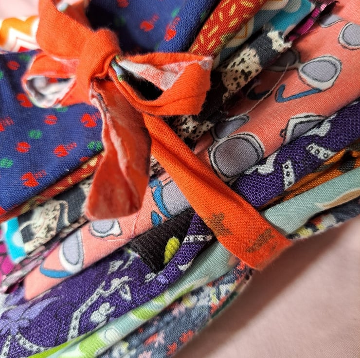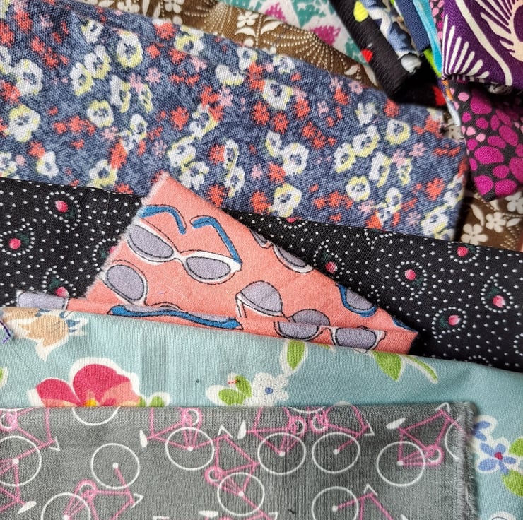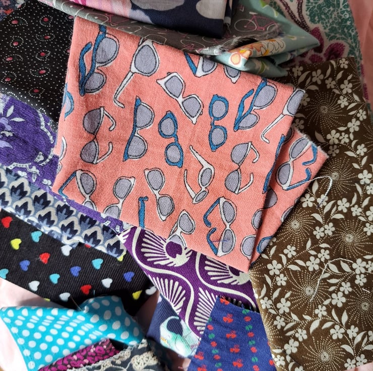 There's no overriding theme here, just the loveliest selection of cotton and linen fabrics: you've got flowers, bicycles, elephants, glasses, leopards and even screws. 21 pieces of vintage, rescued and repurposed fabrics, including a little vintage Laura Ashley and some Liberty.