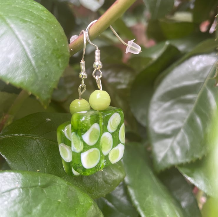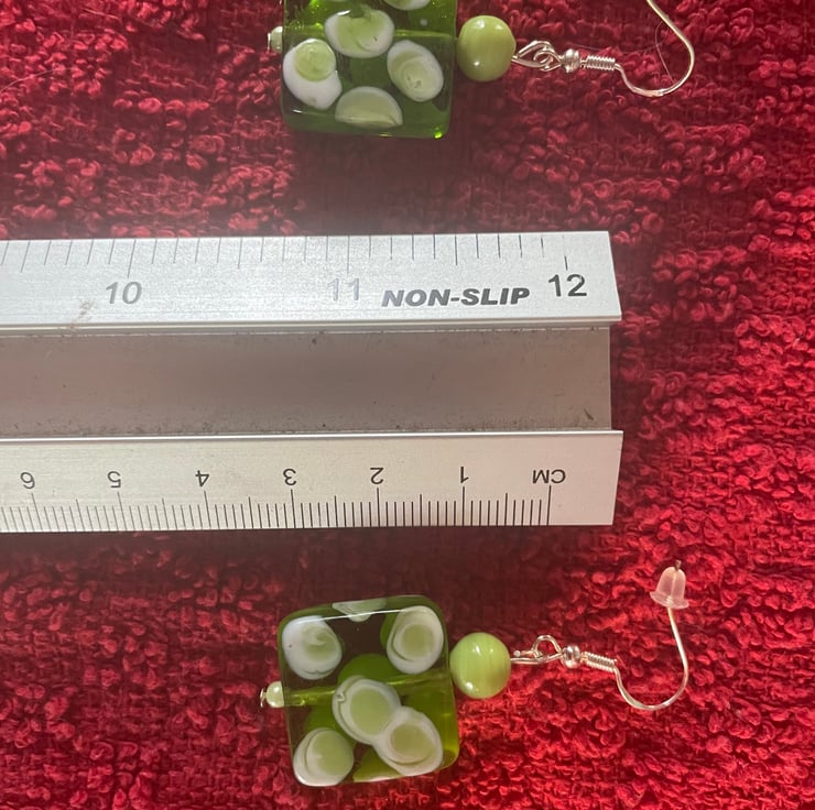 Beatify earrings with fun glass design. Statement shape and style, gets lots of comments! Length approx three cm