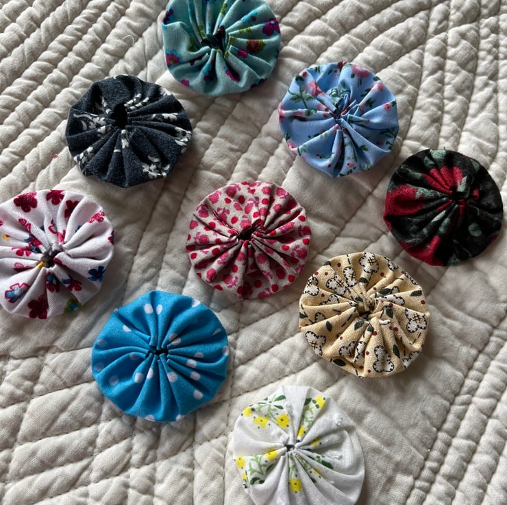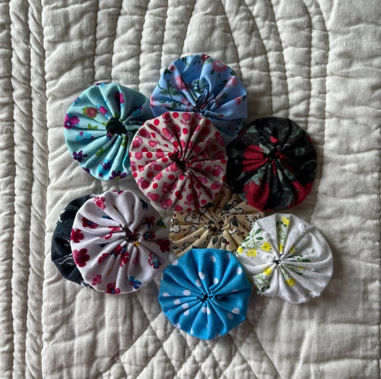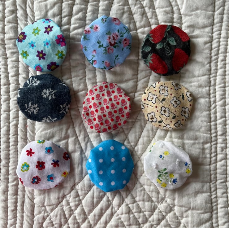 Useful for adding a bit of colour, texture or embellishment to a crafty make, this set of 9 Suffolk Puffs come ready to be attached by stitching or even glueing. They can be used in a variety of crafts including card making and bag making