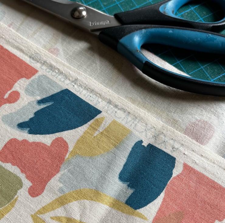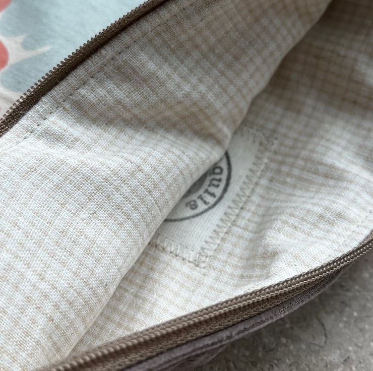 The pouch is fully lined with beige cotton with a tiny checked pattern. There is a layer of reclaimed interlining to give the bag a softly padded feel.