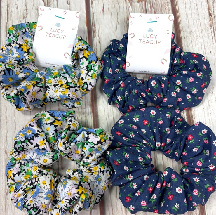I made some skirts using some end-of-line fabric, not wanting to waste any I've used some of the off-cuts to make these fab Scunchies. The floral fabric is a lightweight cotton, which makes a fairly sturdy scrunchie. Choice of two fabrics...