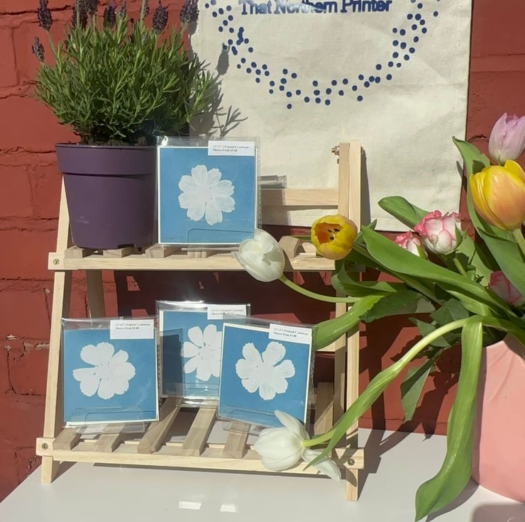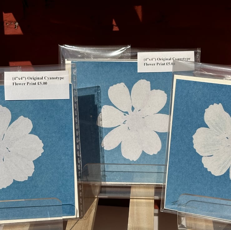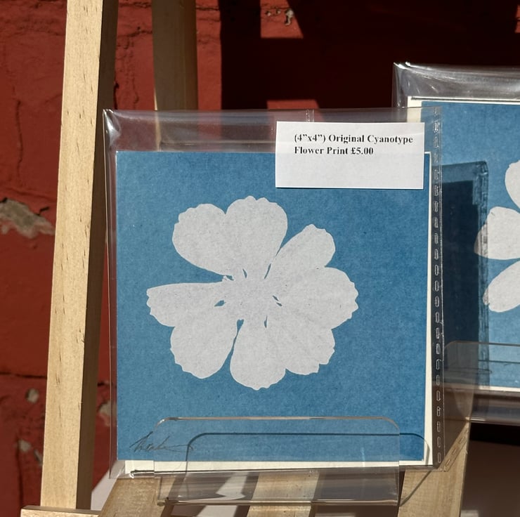 Each print is exposed by hand, using the original cyanotype technique, resulting in rich, deep blue tones and organic floral silhouettes. The image is printed on acid-free watercolour paper and signed on the front.