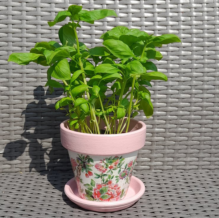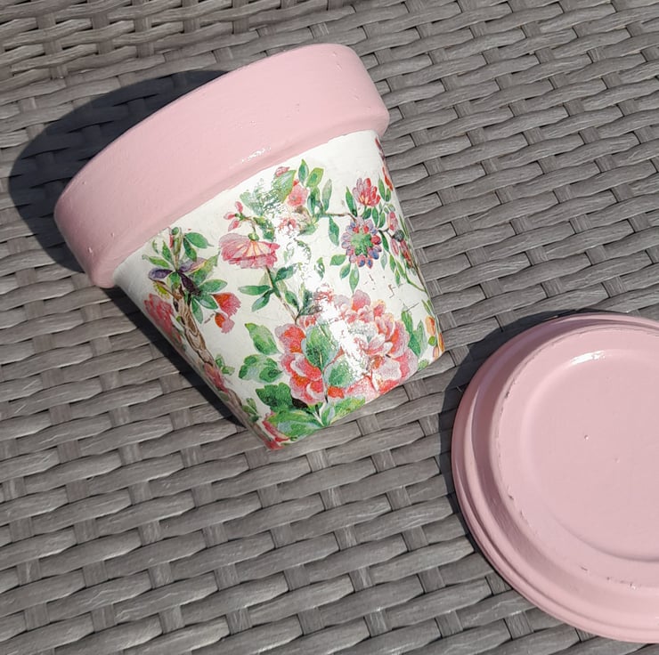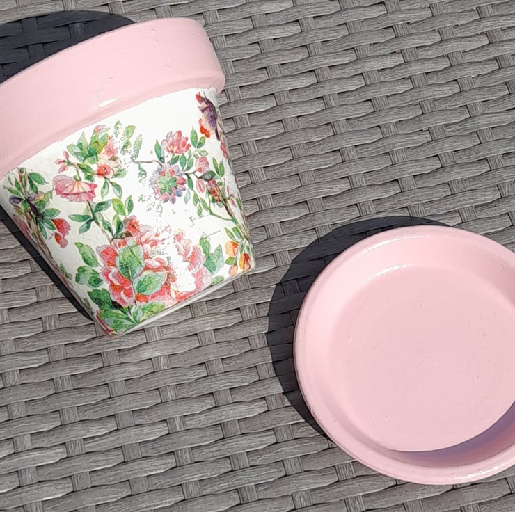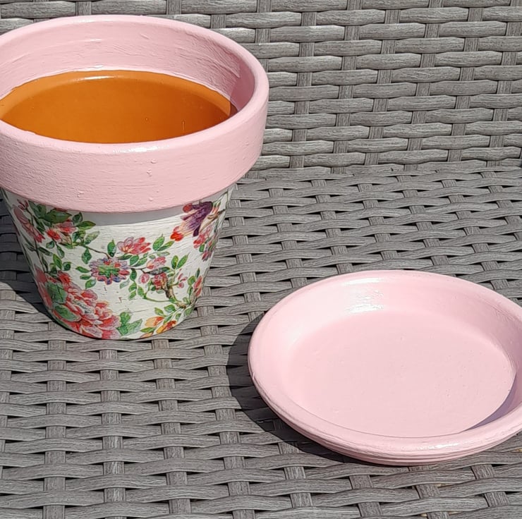 This Ceramic Plant Pot has been painted & a beautiful Oriental Floral design added all around the pot.