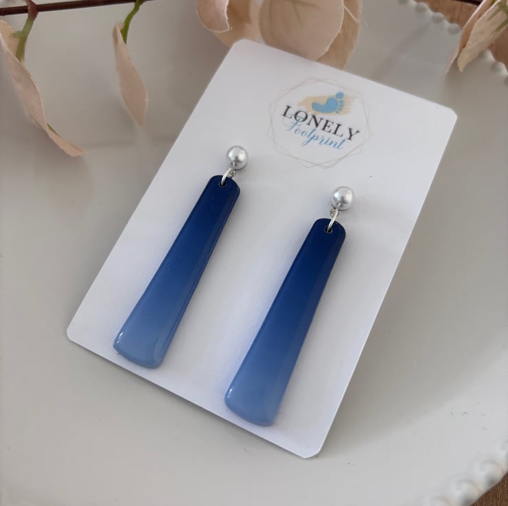 These handmade blue ombré polymer clay earrings with faux pearl studs are lightweight and are perfect for summer days or holidays. Comfy to wear all day, they would make a lovely gift or treat for yourself.