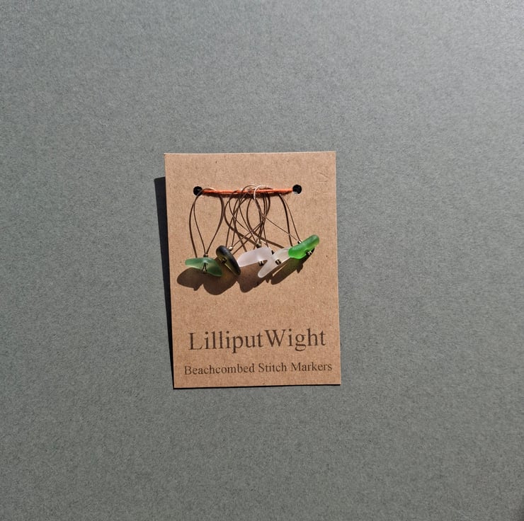 Thin beading wire is used to make the stitch marker loops meaning that they slide easily along your needles with crimps holding the sea glass in place. They will sit happily on a needle up to 7mm.