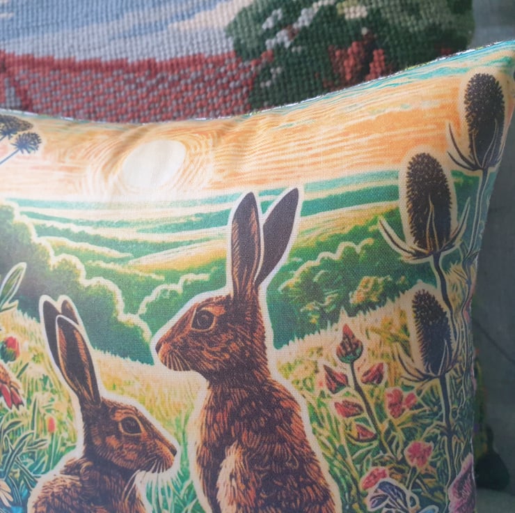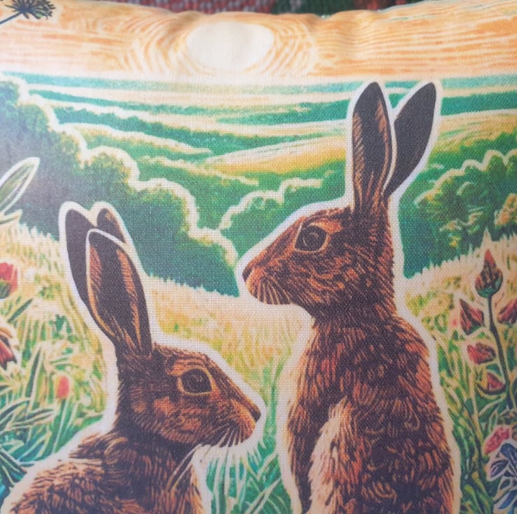 Hare Print Decorative Cushion for Countryside and Nature Lovers