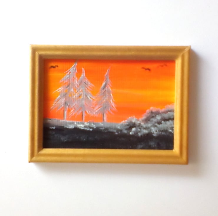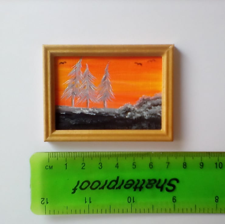 An original acrylic painting, in a wooden frame. Ideal for a dolls house or miniature scene.