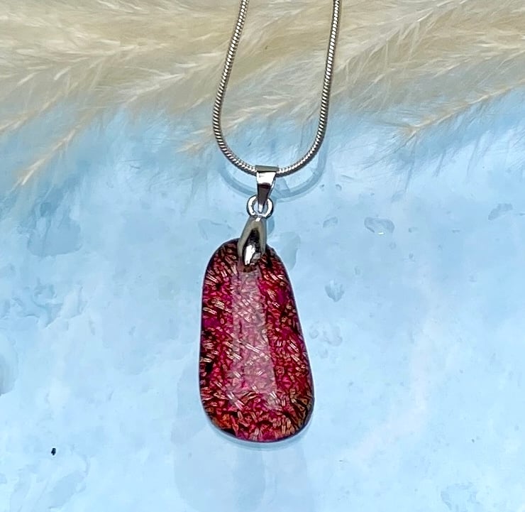 "Please note that glass reflects and shifts colours depending on the lighting and angle. While I strive to capture its beauty in photos, the pendant may appear slightly different in person due to its unique reflective nature."
