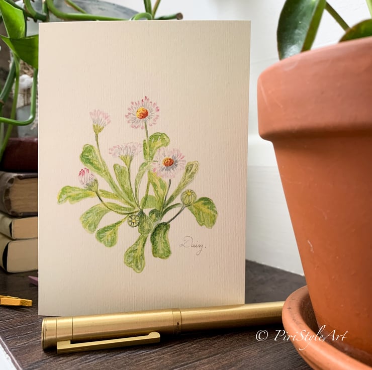 A soft, simple, and joyful design featuring my original Common Daisy watercolour illustration. Known for symbolising innocence, new beginnings, and quiet resilience, the daisy brings a gentle brightness to any occasion.