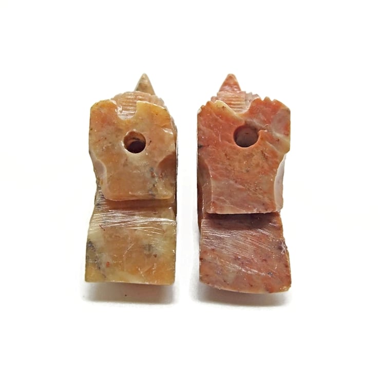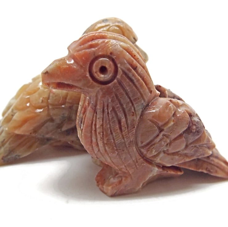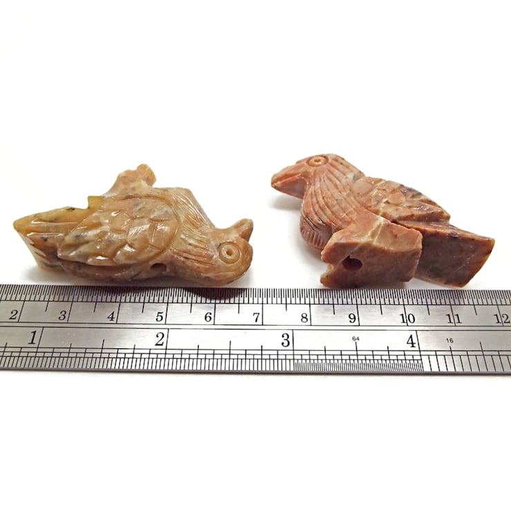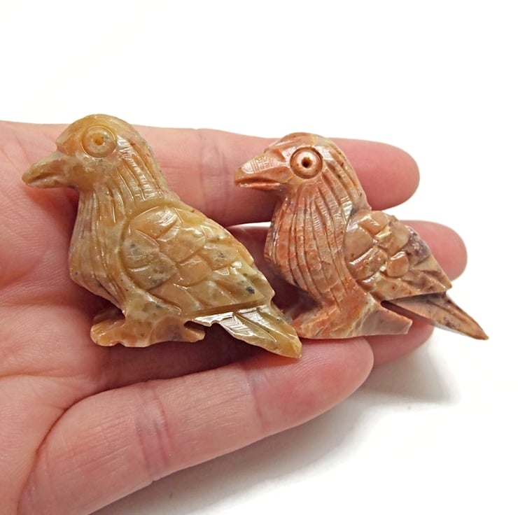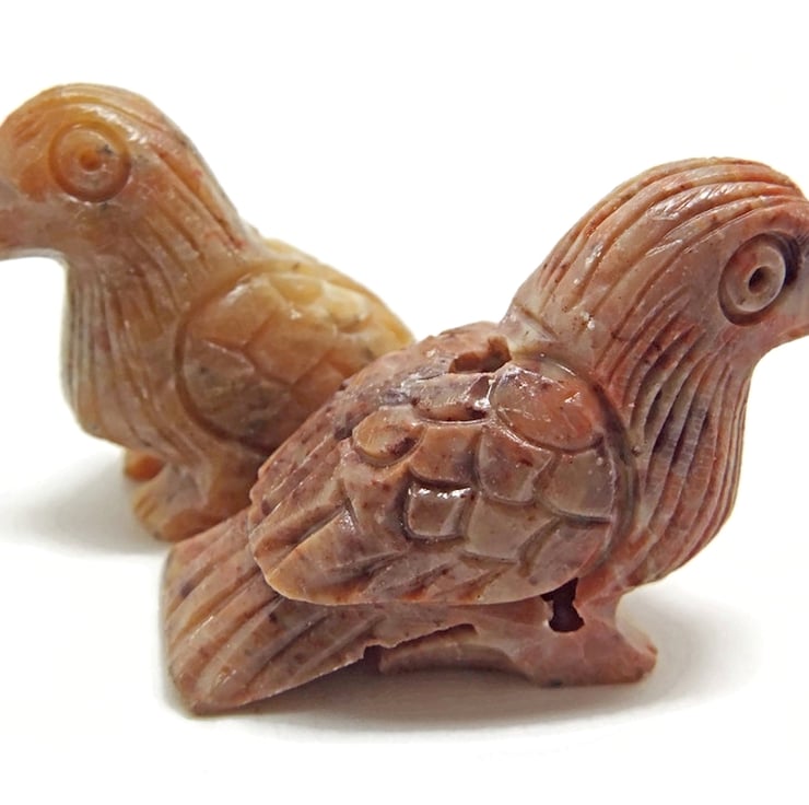 Set of 2 Carved Soapstone Bird Pendants in Reds, Browns, Green and Cream. Perfect for Bird Jewellery or for Home Decoration Crafts.